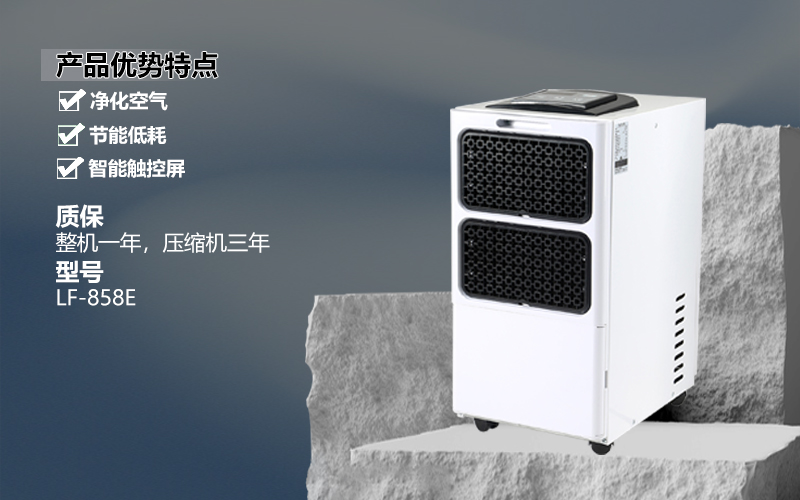 其工作原理是:由风扇将潮湿空气抽入机内,通过热交换器,此时空气中的水分子冷凝成水珠,处理过后的干燥空气排出机外,如此循环使室内湿度保持在适宜的相对湿度。